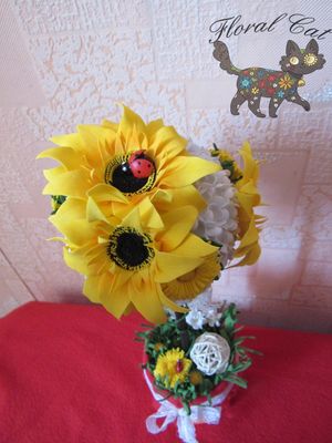 Яркий солнечный по-настоящему летний топиарий с подсолнухами и одуванчиками. станет отличным подарком для близкого человека на любой праздник. Также поможет украсить интерьер. Каждый цветок, включая маленькие белые, выполнен вручную из фоамирана. Есть в наличии, возможно выполнение на заказ с изменением цвета. Стоимость доставки включена в стоимость товара. Осуществляется в любой город РФ. Оплата по договорённости (перевод на банковскую карту или наложенный платёж)