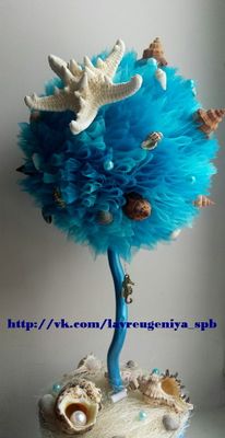 Дерево выполнено из органзы 3х оттенков,ракушек и аксессуаров,высота 50см