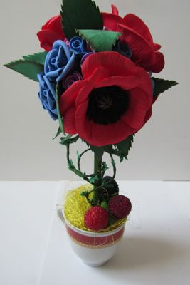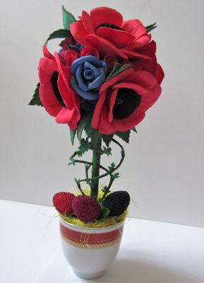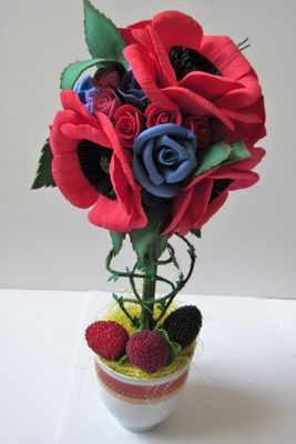 Топиарий с множеством роз и цветущими маками для украшения интерьера. Каждый цветок выполнен вручную из фоамирана. Есть в наличии, возможно выполнение на заказ. Стоимость доставки включена в стоимость товара. Осуществляется в любой город РФ. Оплата по договорённости (перевод на банковскую карту или наложенный платёж)