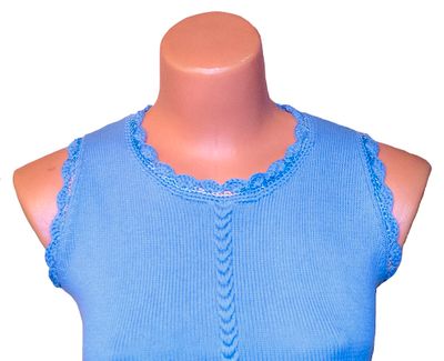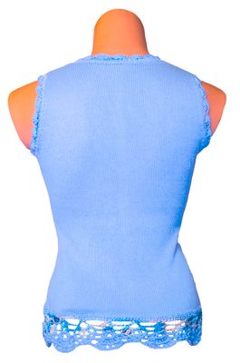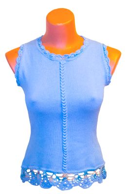 Изготовление: Сделаем на заказ Описание Модель выполнена на основе машинного трикотажа с ручной отделкой кружевом крючком. При изготовлении использована пряжа 100%-ный хлопок, для отделки - вискоза с люрексом. Изделие очень комфортно, так как связана из натуральной пряжи, имеет открытую пройму (американка), прилегающий силует подчеркнет достоинства фигуры. Бренд: Studio Vita700