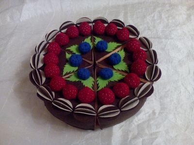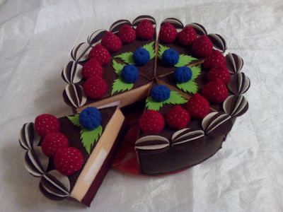 Торт из фетра. Состоит из 6-ти кусочков, которые скреплены между собой липучкой. Диаметр 30 см, высота 6,5 см. Все выполненно вручную.