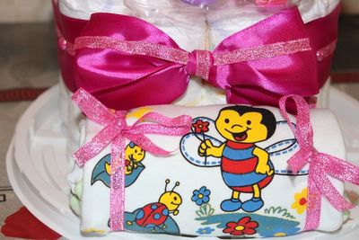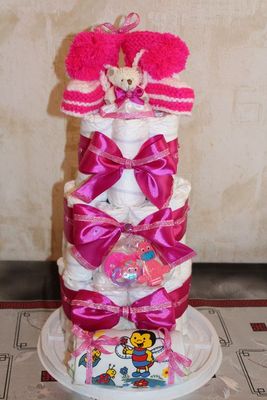 Ещё В набор входят пинетки ,мишка, (боди,штанишки ползунки,кофточка, - по усмотрению ) , соска с зажимом.Есть варианты и другие которые обговариваются и станет чудо тортик дешевле ))