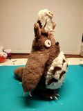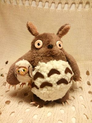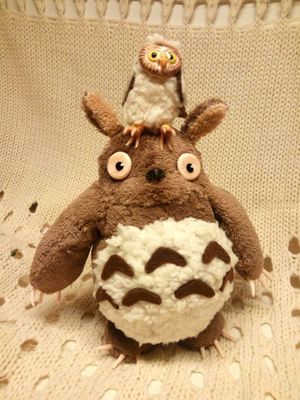 Тоторо с маленьким совенком станет любимым другом у каждого любителя аниме Миядзаки) Работа выполняется на заказ. Цвет и длинна меха может быть любая по вашему пожеланию, как и маленький друг(например котенок, духи из аниме)Срок исполнения 5 рабочих дней. В лапах Тоторо проволочный каркас, поэтому им можно придать любое положение, или вложить в лапки предмет,например- телефон)Размер пузатика: 30х15х15