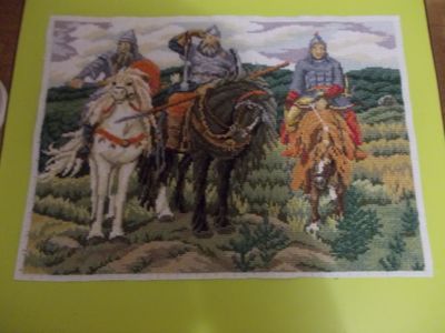 Вышитая картина крестом 'Три богатыря' - это не просто вышивка, это практически вышитая копия картины Васнецова 'Три богатыря'. Картина украсит любой интерьер и послужит отличным подарком, особенно мужчине. Работа вышина крестиком в две нити. Использовано 66 цветов.