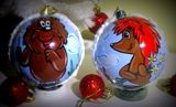 Набор елочных пластиковых шаров с ручной росписью акриловыми красками. Диаметр шара 8 см. Финишное покрытие - акриловый лак.