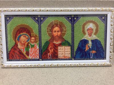 Икона, ручная работа, вышивка бисером (Чехия). Оформлена в красивую рамку, размер вышивки (без рамки) 33*16 см.