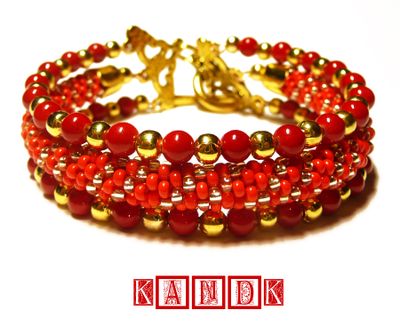 Состоит из вязаного крючком жгута, чешского бисера, коралловых и металлических бусин. Прекрасно держит форму т.к. основа из мемори-проволоки. Украшен резными эллемантами у основания замочка. Вся фурнитура из цинкового сплава без никеля и свинца. Материалы: Чешский бисер Preciosa Ornela Коралловые бусины Пряжа YarnArt Canarias Металлические бусины Мемори проволока Фурнитура из цинкового сплава без никеля и свинца.