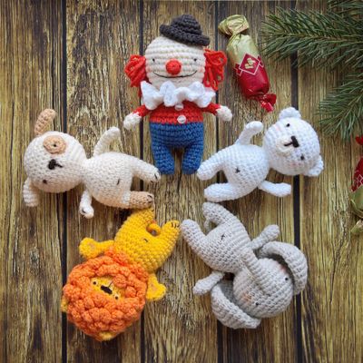 каждый герой связан из полухлопка, наполнен холлофайбером. Рост около 10 см. Стоимость указана за одного. Дополнительно почтовые расходы. Слона нет в наличии