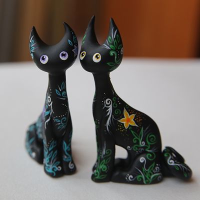 Цветочные глюкокотики не всегда были такими. Сначала они были совершенно обычными черными котами, грустными и скучными. Они уныло смотрели на улицу, где снег то выпадал, то превращался в серую слякоть. Раз за разом, опять и опять. И в один прекрасный момент у котиков лопнуло терпение. Они решили зацвести! После долгих тренировок они смогли научиться особому весеннему мурчанию, и их шкуры покрылись цветочным узором. Теперь котики стали совершенно счастливыми, но этого им показалось мало. Теперь они мечтают принести счастье всем, кто захочет с ними дружить. Скоро весна, пора цвести! В настоящий момент котики уже проданы, но могу сделать аналогичных. Срок изготовления от 7 до 10 дней.