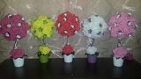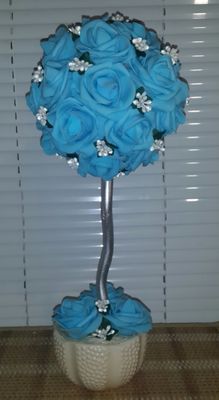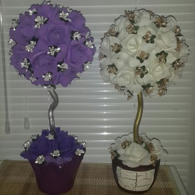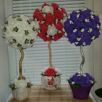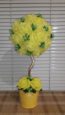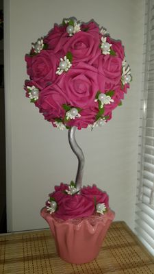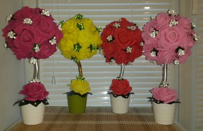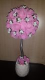 Цветочный топиарий изготовлен из латексных розочек. Высота маленького топиария примерно 30 см, цена 700р. Высота большого топиария примерно 40 см, цена 1200р. Цвета разные.