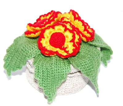 Выполнено крючком из акриловой пряжи, вазон из суровой нити.
