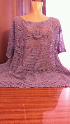 Связана крючком филейной вязкой, 100% хлопок. Размер 46-50.