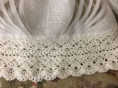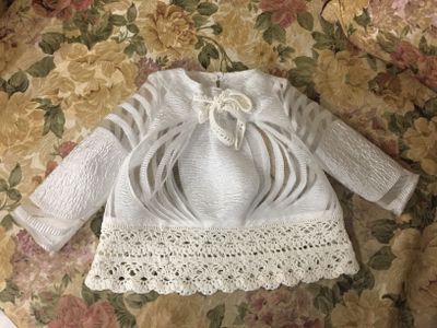 Туника для девочки, сшита из гипюра и декорирована кружевом из хлопка. Размер туники 86