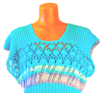 Изготовление: Работа представлена для примера Модель выполнена в смешанной технике (машинный трикотаж, отделка крючком ). При изготовлении использована пряжа: 100% хлопок,пряжа секционного украшения ( Турция ) Изделие уникально по дизайну, практично в уходе, комфортно в жаркую погоду. Автор: Измайлова Т.В. Studio Vita700 Хлопок и секционное украшение