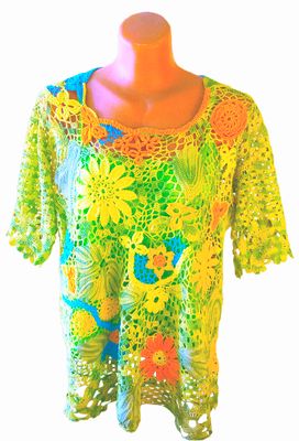 Изготовление: Сделаю на заказ (точное повторение невозможно) Описание Модель выполнена крючком с использованием техники наборного кружева. При изготовлении использована хлопковая пряжа. Сцепное кружево хорошо держит форму (не теряет ее и после стирки). Туника экологична, максимально практична, подчеркнет индивидуальность хозяйки. Сочетания цветов, композицию можно подобрать по вкусу. Автор: Измайлова Т.В. - Studio Vita700 Материалы хлопок 100% Размеры по меркам