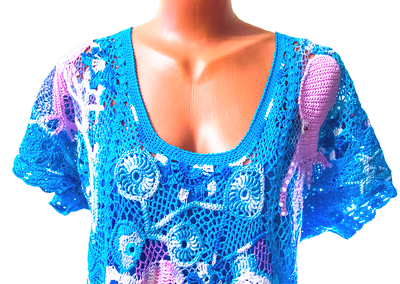 Изготовление: Работа представлена для примера Размеры образец 52-54 Материалы хлопок 100%, хлопок с вискозой Описание Модель выполнена крючком в технике наборного кружева, имеет оригинальный авторский дизайн, использована хлопковая пряжа, пряжа с вискозой. Изделие хорошо держит форму, практично в уходе, благодаря натуральным материалам уютно в жару. Бренд: Studio Vita700