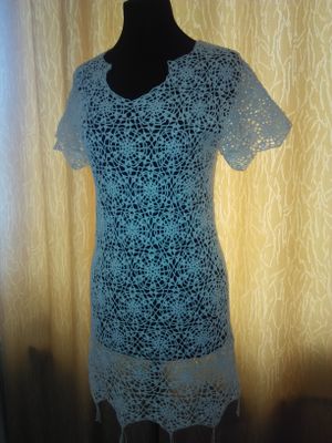 Туничка универсальная. Вы можете создать любой образ,граненые снежинки очень красивы. Выполнено методом сцепного кружева,крючком. 44-46р. Можно носить на пляже.100% хлопок. Так же выполню на заказ в любом цвете.