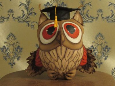 Игрушка выполнена в технике "Грунтованный текстиль" по мастер-классу А.Голеневой. Полностью изготовлена из ткани, расписана акриловыми красками. Прекрасный подарок на День Учителя, Выпускной или начало учебного года.