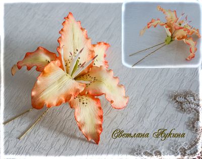 Шпилька украшена цветком лилии, выполненной из практичного материала фоамирана. Ручная работа.