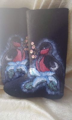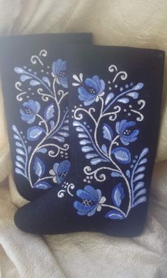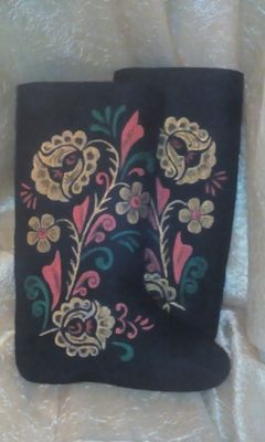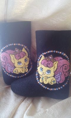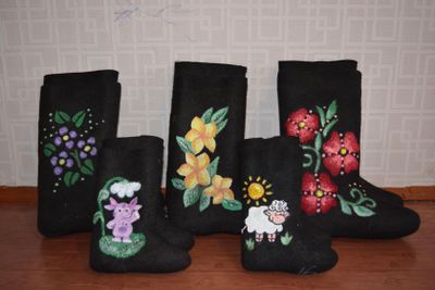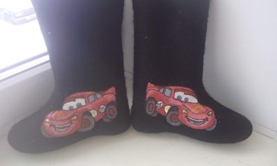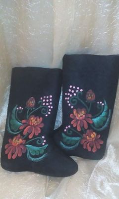 Отличные мягкие валенки - самовалки, рисунок нанесен акриловыми красками