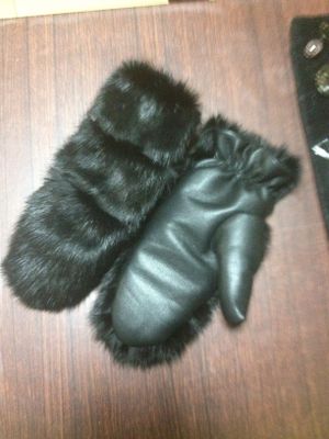 варежки из норки и кожи