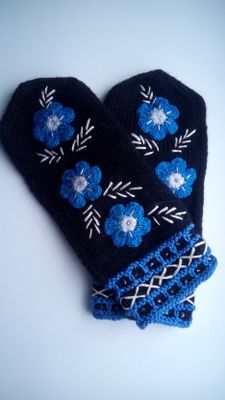 Варежки ручной работы, выполнены спицами, бесшовные. Вся фурнитура выполнена крючком и пришита к основному полотну изделия с использованием фурнитуры.Пряжа мягкая, теплая, не колючая. Данные варежки черные из мериносовой пряжи, могут быть выполнены в другой цветовой гамме и из другого материала на заказ. Модель авторская, копирование и использование фото запрещено. Доставка по России 260 руб