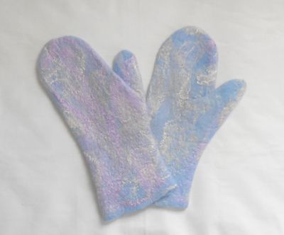 Варежки женские, сваляны из шерсти мериноса с добавлением нитей вискозы. Размер: ширина в самой широкой части 11 см, длина 25 см. Мягкие, теплые, уютные.