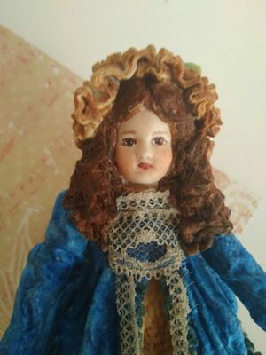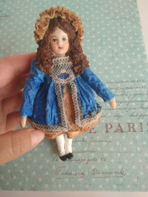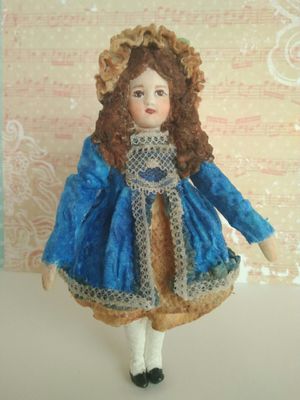 Маленькая француженка Софи . Маленькая куколка размер всего 14.5 см. Может быть интерьерной игрушкой или игрушкой на елку. Не предназначена в качестве игрушки для детей. Боится воды, требует бережного отношения. Выполнена из ваты, личико снято со старинного молда, пластик. Стоимость доставки не включена. Почтой России по тарифам. От 330 руб. в зависимости от региона доставки Лёгкая и невесомая . Может украсить ёлку или стать интерьерной куклой ( кукла для антикварной куколки) . Выполнена из Ваты и клея ПВА , окрашена акриловыми красками, акварелью. Каркас медный.