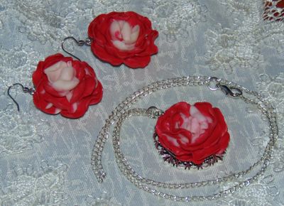 кулон и серьги из полимерной глины, металлической фурнитуры.. швензы медицинский сплав... украшение в виде цветков пионов ждет вас