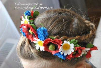 Очень нежный, аккуратный веночек для молодой девушки. На голове смотрится необыкновенно. Подойдет для фотосессии. Может стать прекрасным дополнением к летнему и яркому образу. Размер регулируется лентами-завязками. #комбинированный #полевые_цветы_травы #полевые_цветы #васильки #ромашки #маки #венок_из_цветов #венок_на_голову #фоамиран