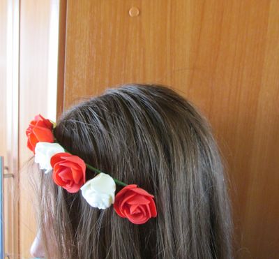 Венок для головы из искусственных цветов, проволки и флористической ленты.