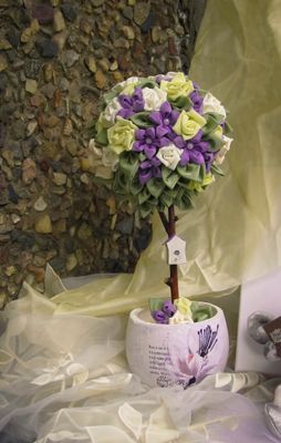 Это нежное декоративное деревце с цветами и листочками из ткани освежит интерьер и принесет капельку тепла в Ваш дом несмотря на приближение осени ;)