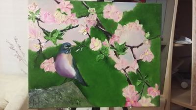 Картина выполнена маслом на холсте (холст на подрамнике). Размер 40*50. Техника кисть, мастихин. В раму не оформлена, что позволяет подобрать багет самостоятельно по своему вкусу. За дополнительную плату можно оформить в багет. Возможно использование картины в качестве декора по фен - шуй. Птичья энергия принесет в дом свет, удачу и вдохновение. А цветущая яблоня несет в себе энергию нового, невинного, свежего. Изображение яблони часто используют для приобретения душевного здоровья.