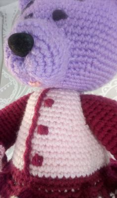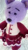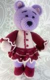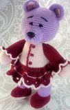 Вязаная игрушка Медведка. Девочка - медведь в вязаном бардовом платьице и туфельках. Рост 30 см. Одежда не снимается .