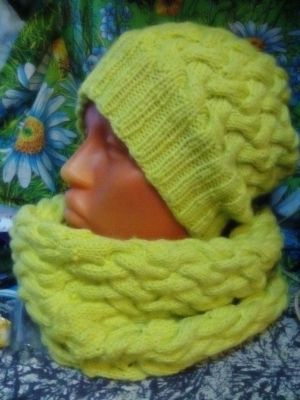 Свяжу для вас такой же любого цвета. Цена шапочки 850 руб., снуд 1400 руб. вместе с нитками. В данном случае 20% шерсть и 80% акрил.Используется детская шерсть. При покупке комплекта цена 2100 рублей. Возможна отправка почтой