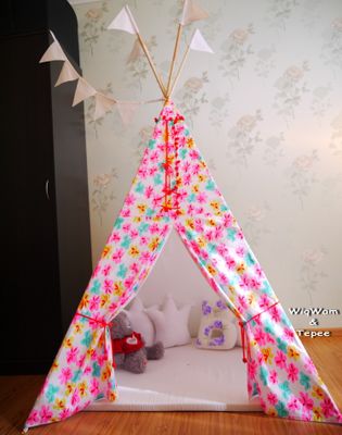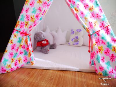 Детский вигвам из 100% хлопка. Размер вигвама 110*110. Дополнительно можно приобрести коврик, подушки, корзину под игрушки.