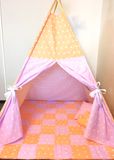 В комплект входит: ⛺️Вигвам ⛺️Палочки ⛺️Лоскутный коврик ⛺️Флажки ⛺️Подушечки