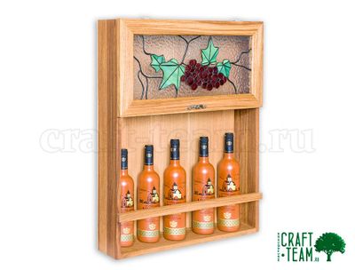 Производитель Мастерская «Крафтим» Цвет темно-коричневый Тип установки настенный Порода древесины дуб Витраж Тиффани есть Материал витража витражное стекло, припой, патина Высота 700 мм Ширина 550 мм Толщина 140 мм Количество бутылок 5 Ручка есть Газовый лифт есть