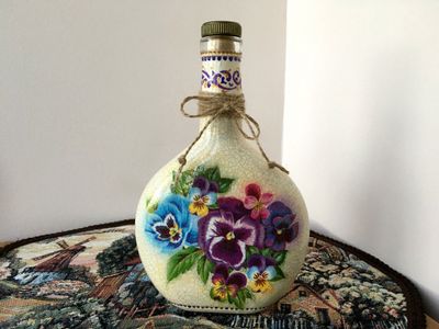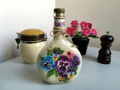 Размер 21*13,5 Ее можно использовать как вазочку, поставив в нее цветок. Можно использовать на кухне для подсолнечного масла, уксуса или чего-то еще. А можно украсить ею стол, подавая в ней, например, домашнее вино. Она будет украшать ваш интерьер и радовать ваш взгляд каждый день!