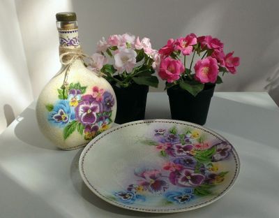Размер 23 Тарелочка выполнена с использованием техник декупаж и кракелюр, за счет этого создается ощущение старинной и красивой вещи. Но нашу тарелочку можно смело использовать и как самую обычную тарелку! Рисунок нанесен с обратной стороны прозрачной тарелочки. Поэтому поверхность, которая может соприкасаться с едой, осталась не тронутой ✌ 🍴 Эту тарелочку можно пилить ножами и скрести вилками :) и использовать для абсолютно любой еды! Нужно только бережно ❤ помыть после, без посудомоек и замачивания :)