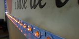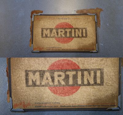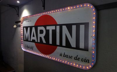 Старая винтажная вывеска Martini. Сделана Enzo Piccoli в 1957 году для ресторана Martini Terrazza о чём гласит надпись сделаная на шильдике сзади. Сделана из металла. Изображение с объёмными буквами. По периметру подсвечена лампочками накаливания. Два режима свечения яркий и тусклый. Сделана профилактика электрической схемы. Ничего не менялось кроме лампочек. Лампочки заменены на советские 70х годов. Лампочки были такие же, как и оригинальные. Состояние на фото и видео. Фотографии высокого качества можно посмотреть по ссылке - flickr.com/photos/monarch_gallery/albums/72157711078858847 Видео по ссылке - https://youtu.be/OyOG99lfqzo Дополнительные фотографии по запросу. Крутой аксессуар для дома и бара. Вес - 20-22 кг Размер Длина х Ширина х Толщина - 141х63х50 см