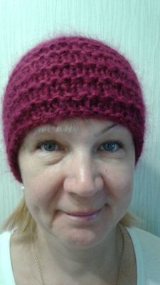 Шапочка "Вишня"связана в 3 нити:2 нити мохер и 1 нить пехорка бисерная вишневого цвета.шапочка очень теплая и подходит для осени и зимы при носке распушится еще сильней