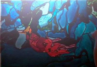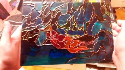 витражная картина, витражная роспись профессииональными итальянскими красками по стеклу, с изображением снег ирей в зимнем лесу,формат а4