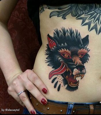 Татуировка волк на животе