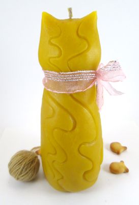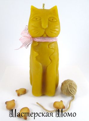 Этот замечательный подарок для любителей котов и кошечек! Издавна живой огонь был символом очищения. Свеча очищает пространство, умиротворяет и успокаивает. Ежедневно зажигая свечку за трапезой, атмосфера дома начинает наполняется таинством семейного счастья и глубоких душевных открытий. В нашей семейной мастерской мы делаем свечи с радостью и любовью. высота 16см диаметр 6см цвета: можно сделать из светлого или темного воска бантик может не совпадать с фото