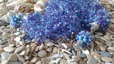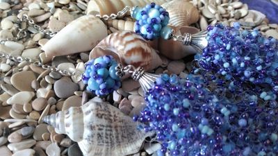 Пышное воздушное колье "Морской бриз" связано из 50 воздушных нитей не калиброванным бисером 7 цветов. Декоративная часть с бусинами 40 см, вместе с цепочкой 58см.