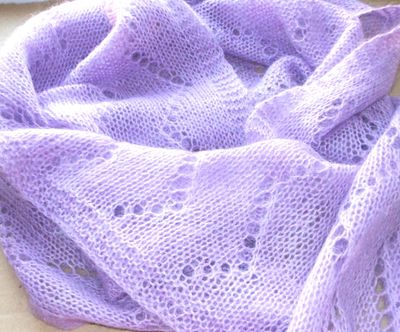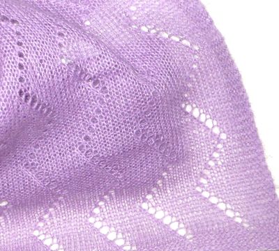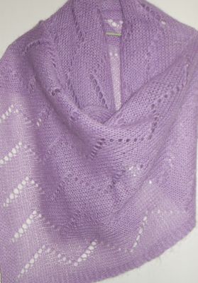 Тонкий, невесомый палантин нежного сиреневого цвета. Очень теплый, связан спицами из тонкого мохера. Ажурный палантин - красивый и теплый аксессуар в холодное время года модницы любого возраста. Приятен на ощупь, не колется. Можно надевать и под верхнюю одежду. Размер: Ширина - 50 см, Длина 135 см.