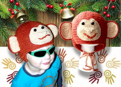 Забавная детская шапочка-обезьянка. Авторская модель связана крючком, без швов, украшена аппликацией в виде мордочки обезьянки и ушками. Курносая, ушастая, с очаровательной улыбкой, она обязательно понравится малышу или млышке. Шапочка теплая, шерстяная, завязки надежно зафиксируют ее на голове ребенка и сохранят ушки в тепле. Шапочка послужит отличным подарком-символом на новый 2016 год. Ее можно использовать для фотосессии или в повседневной носке. Дополнительное описание Глубина 17 см Обхват 46.0 см Сезон Демисезон Пол Унисекс Состав шерсть 100% Фактура материала Ручная вязка Комплектация:шапочка Ручная работа! Точное повторение невозможно! Хотите сделать заказ? Напишите мне RuchnayaRabota74@yandex.ru.