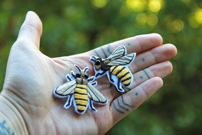 Очень милый комплект из двух брошей - пчёлок. Ручная вышивка хлопком. Основа - фетр. Размеры - 4*3,5см