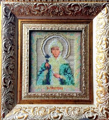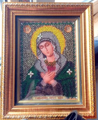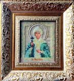 2 работы вышитые бисером святая Юлия и Богоматерь Умиление размер 18*12 см, плюс оформление в профессиональный багет.цена за каждую